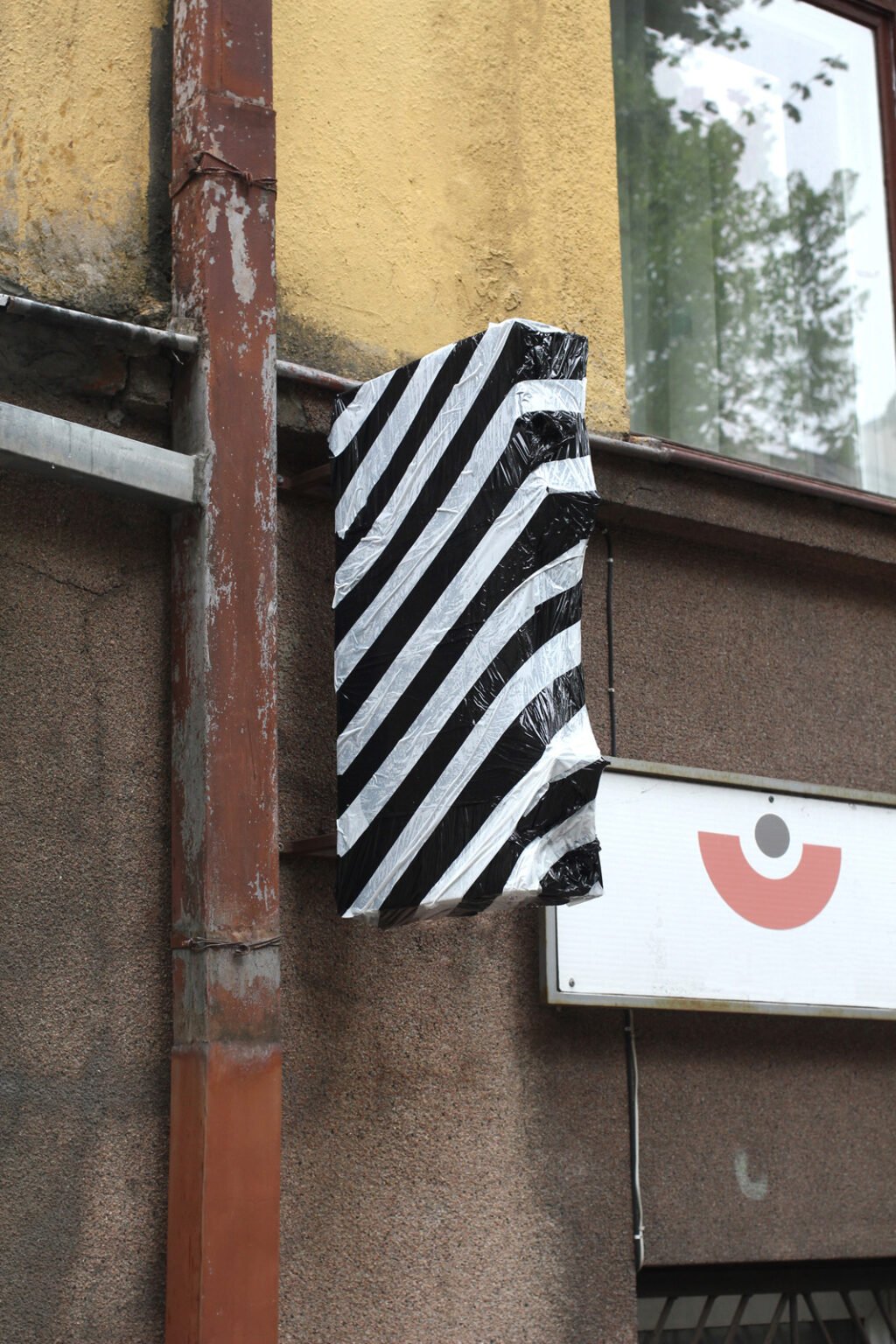 Personal project. Street art comes in many forms, and at that time I was fascinated by what could be created using the simplest, cheapest materials — like plastic tape. By taping around leftover frames from old advertisements, commercial signs, and other urban traces, I created a small series of objects. The work invites reflection on our surroundings and the visual clutter that shapes the environment we live in.