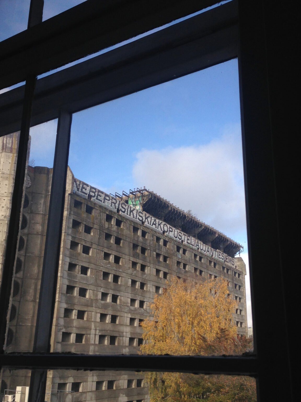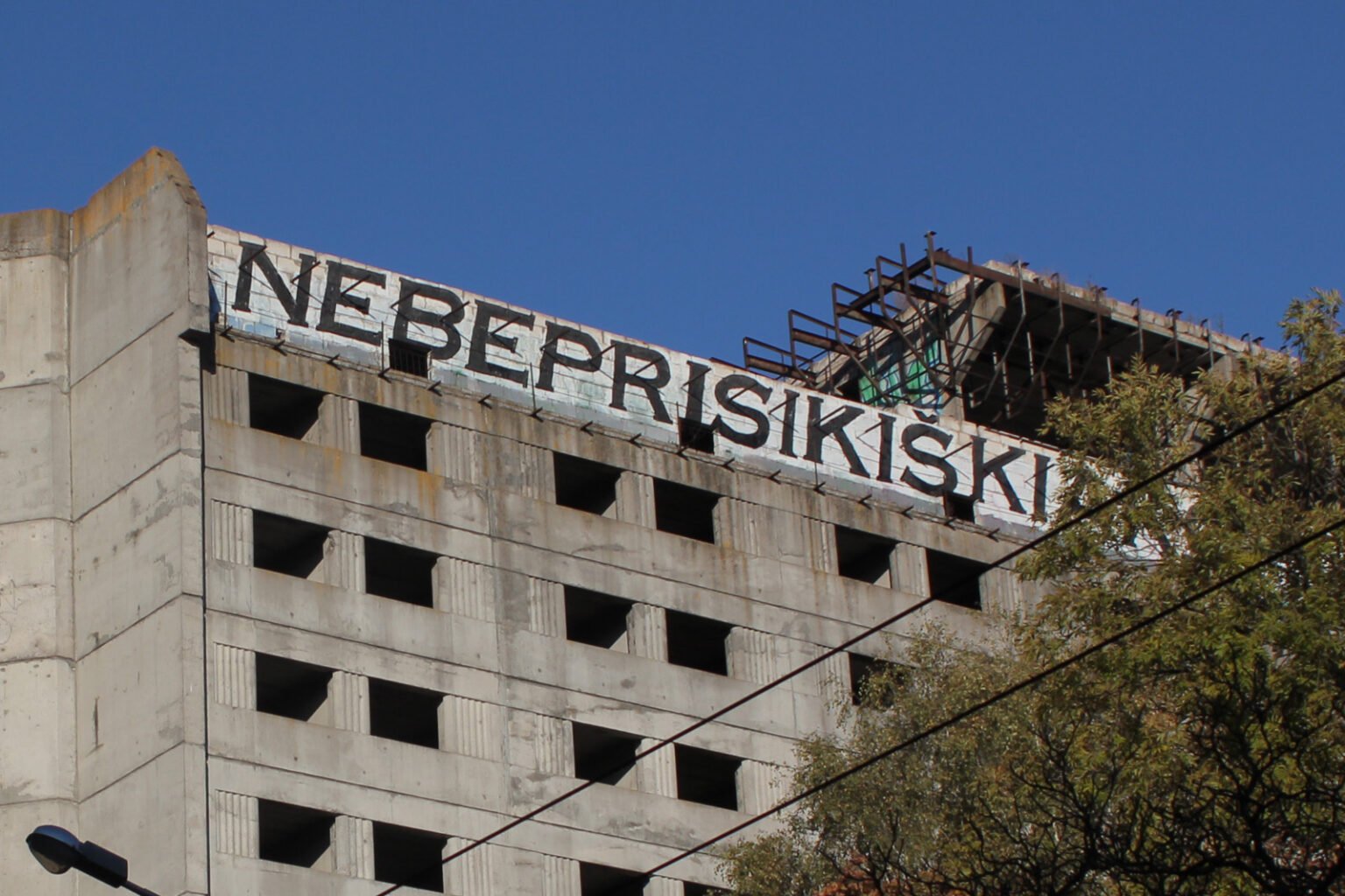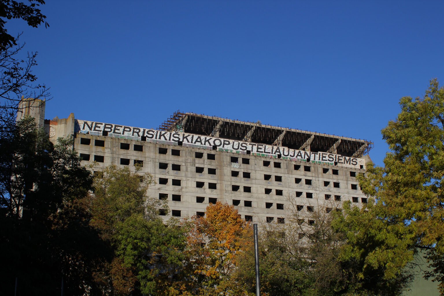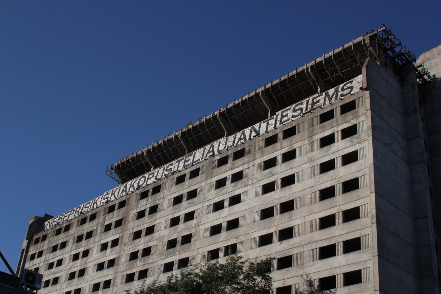 By placing the longest Lithuanian word in a spot visible from different parts of the city, I wanted to show that the message I’m sending is serious. Not only am I playing with the traditions of graffiti artists, but I am also drawing attention to the problem of abandoned buildings. In doing so, I am creating a Lithuanian, polysemantic local sign that offers both a commentary on the city and a personal artistic gesture.