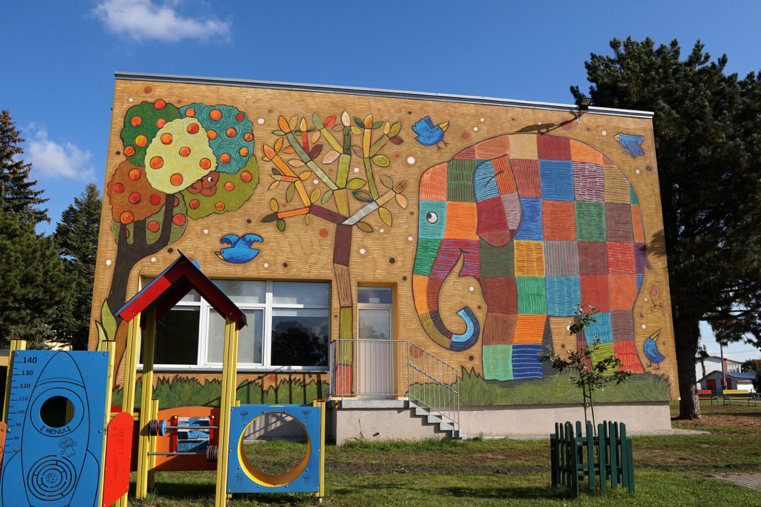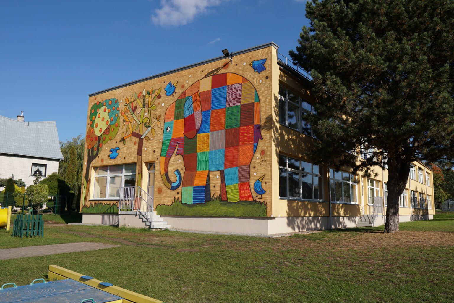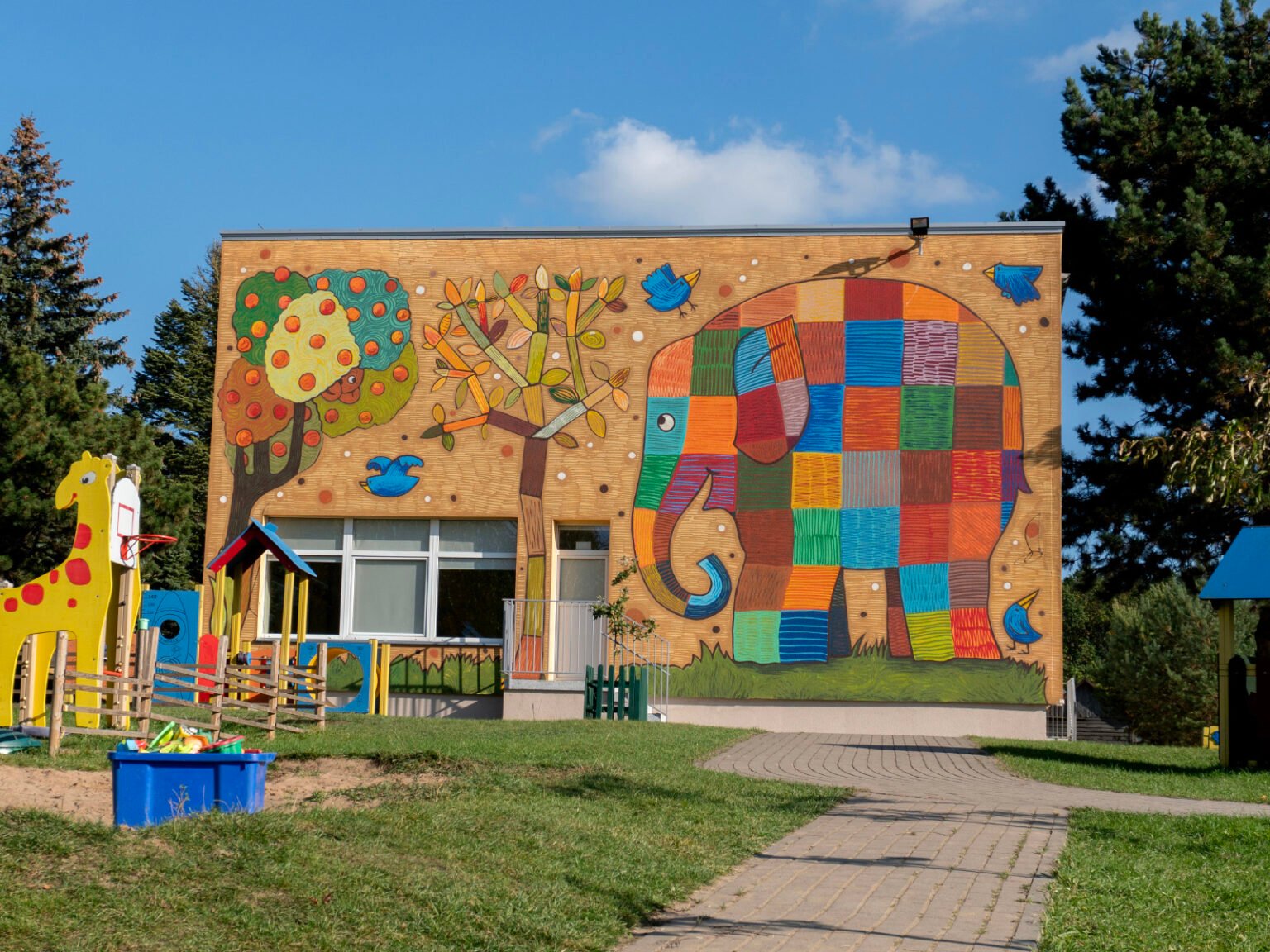The idea for this mural was suggested by the head of the educational institution “Žilvitis”, and the children from the kindergarten themselves took part in the creative process.