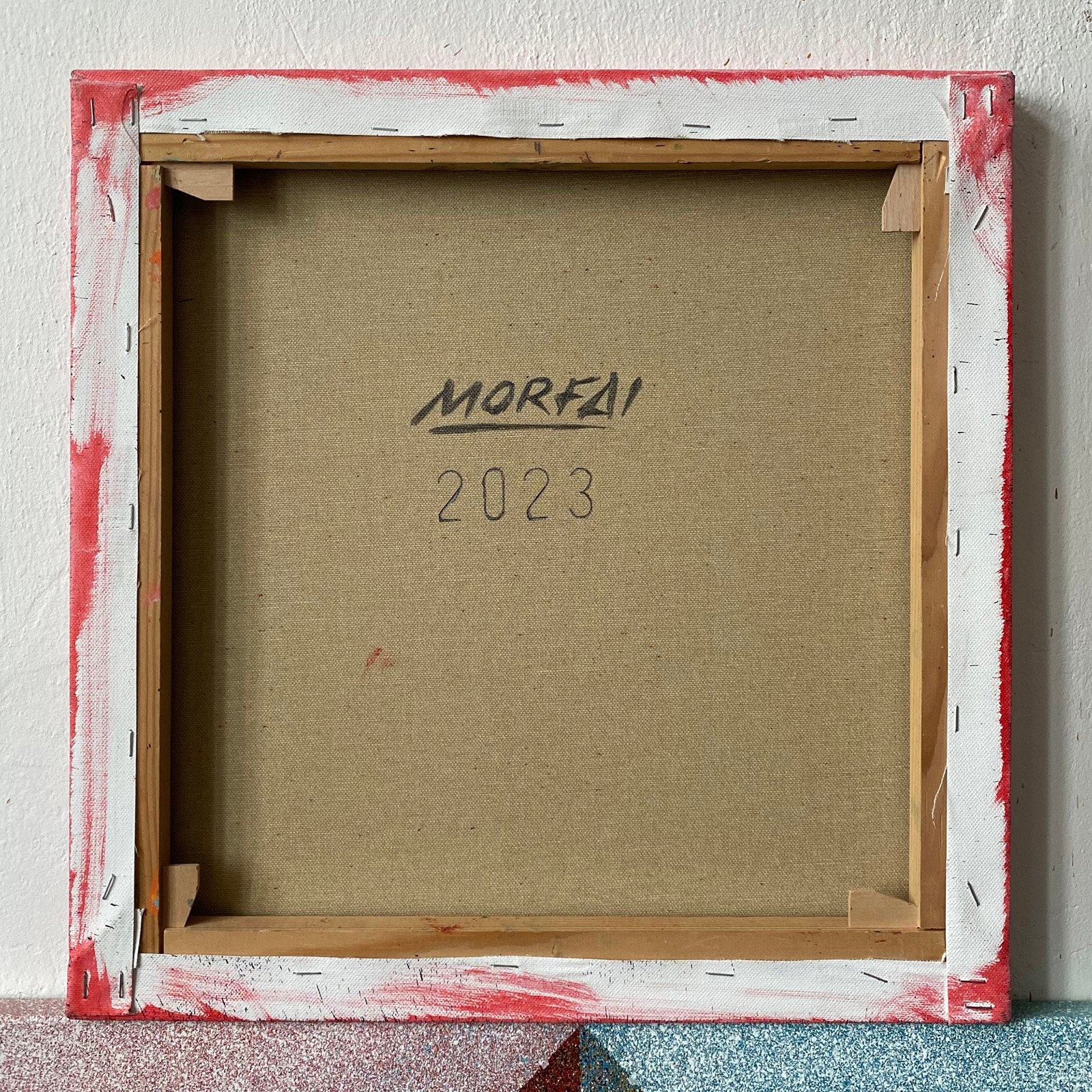 The “Noise” series began from this straightforward approach, and the method offers endless possibilities for creating new works by combining sprayed textures with strong graphic elements.