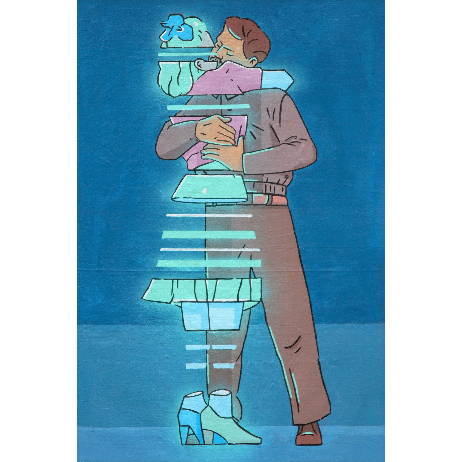 The works in the “Noise” series are created using a special spray-paint technique. Instead of producing a soft mist or smooth shading, the paint breaks into tiny dots, similar to pointillism. This gives the surface a textured, grainy feel—something between stone, old film grain, and digital noise.