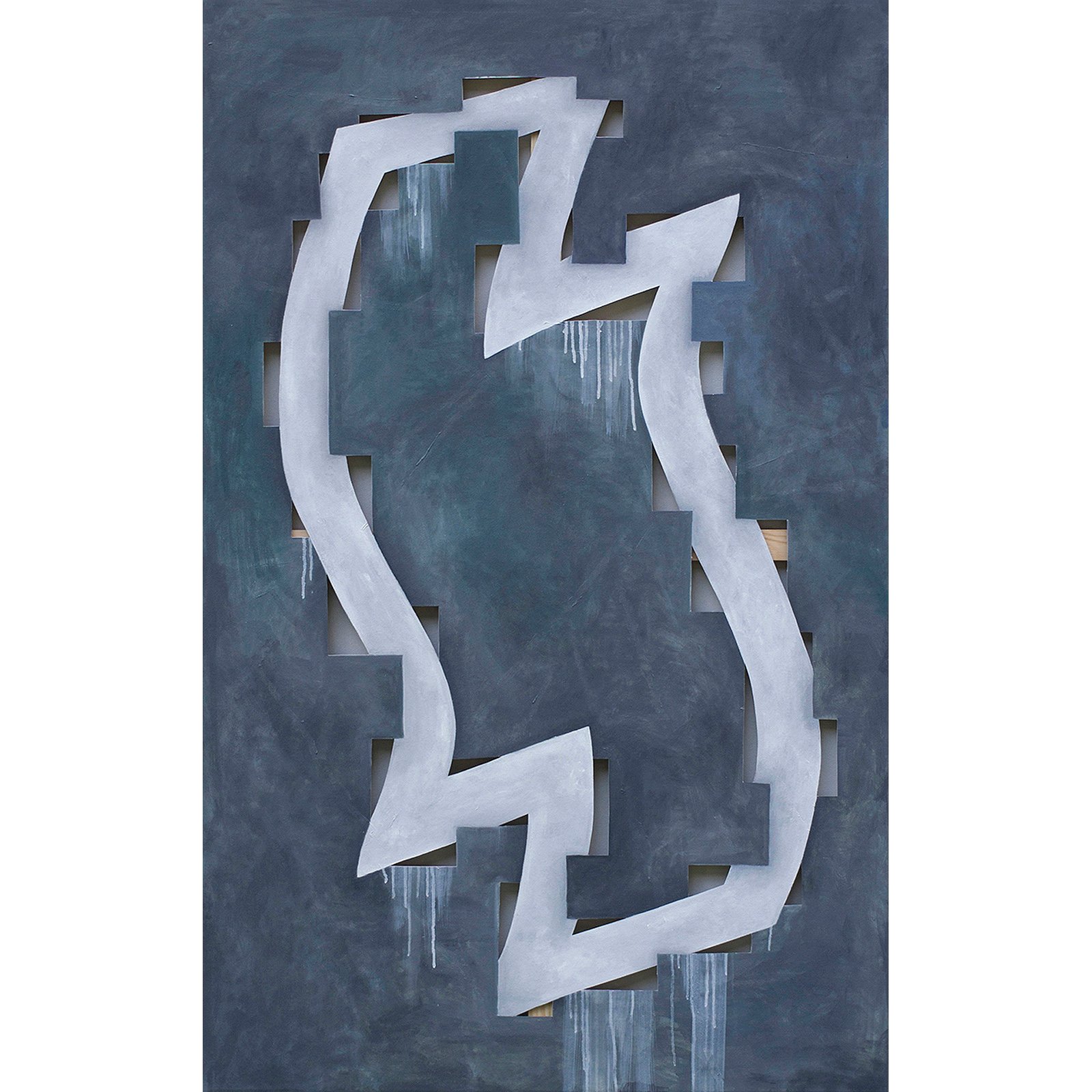 As one of my solo exhibitions was called “PNG Canvases”, it pretty much defines what it’s about: cut pieces of canvas, just like in a PNG digital image format where you can have a transparent background—here, you can see the background, the wall.