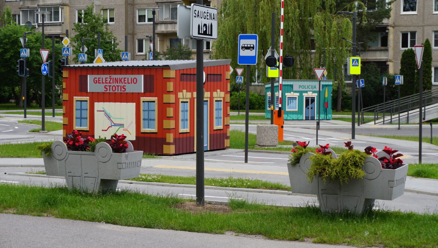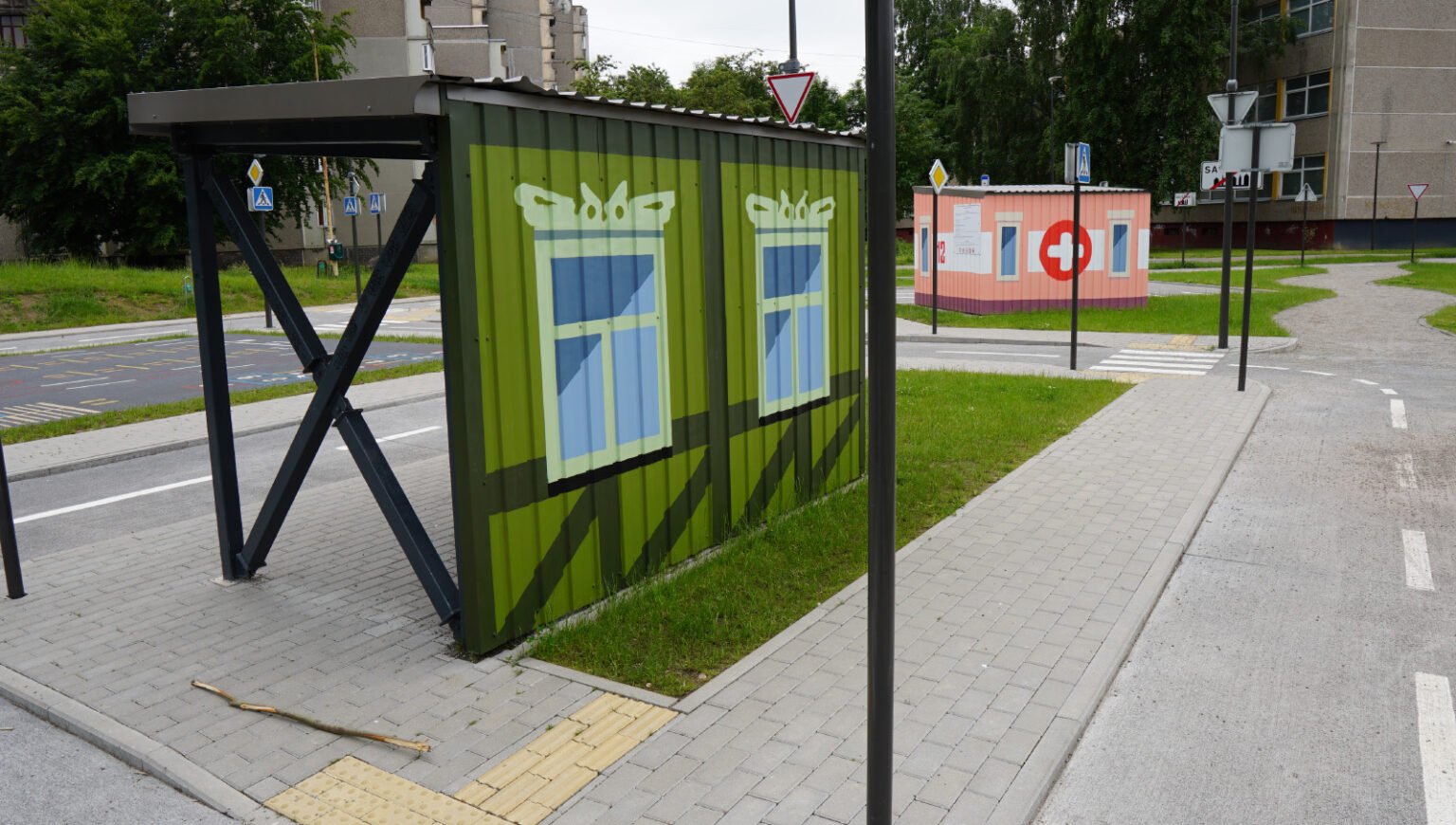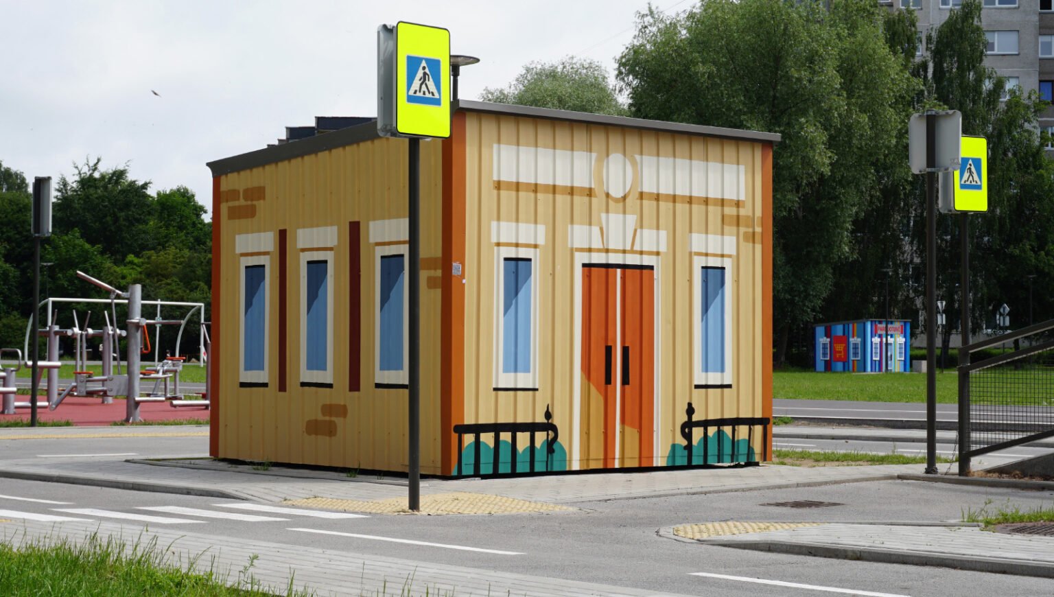 This was the first Safe Traffic Town in the Baltics, designed to help children learn about road safety and traffic signs. I had the honor of decorating the metal houses in this miniature town.