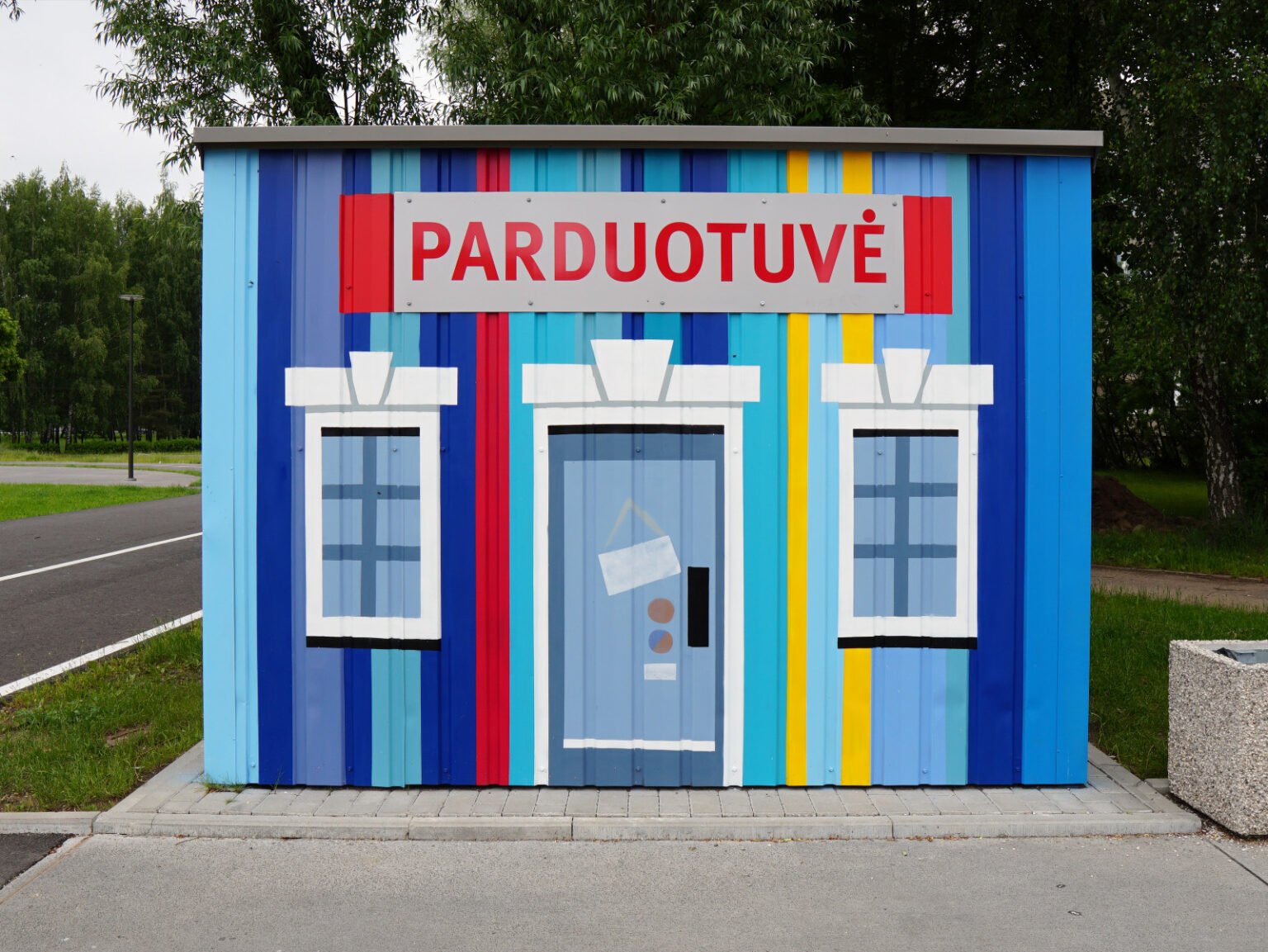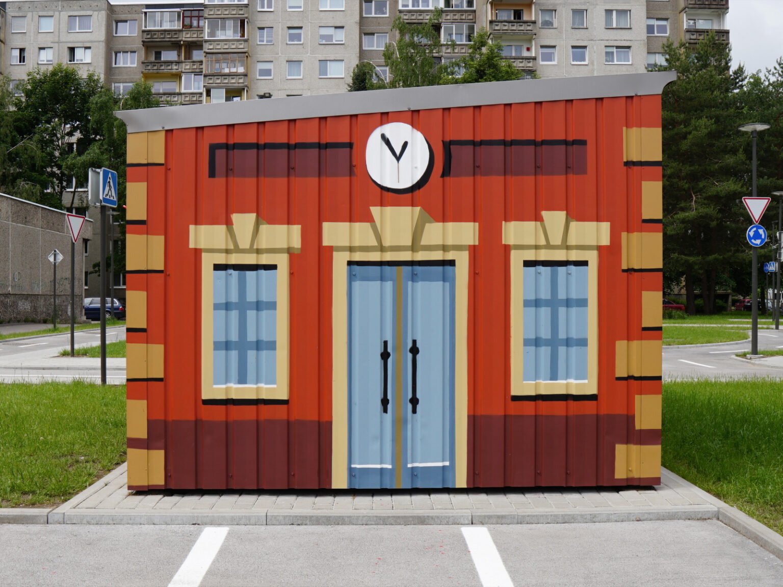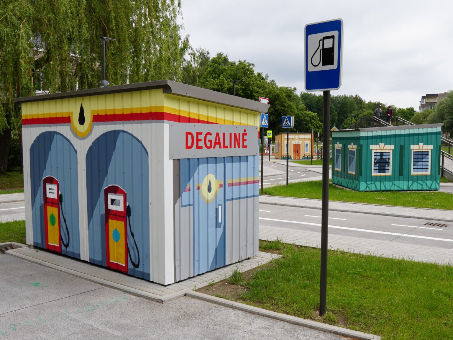 This was the first Safe Traffic Town in the Baltics, designed to help children learn about road safety and traffic signs. I had the honor of decorating the metal houses in this miniature town.