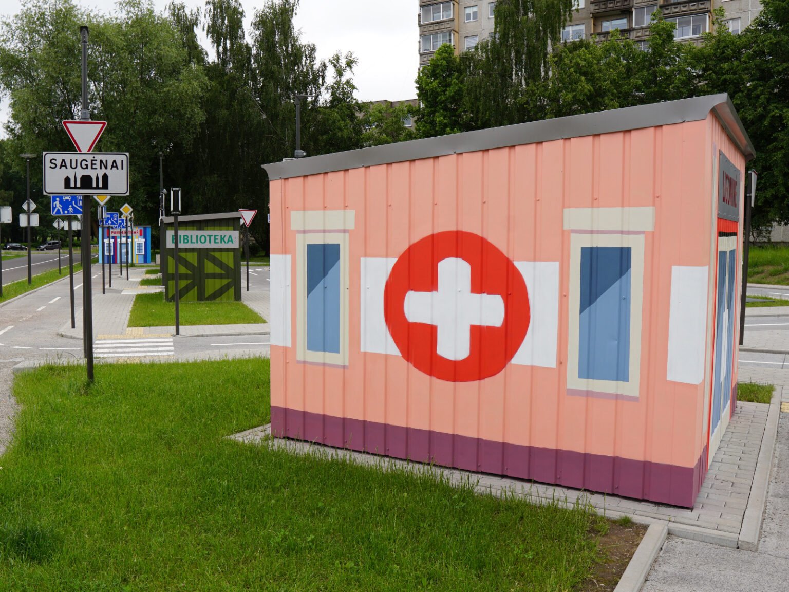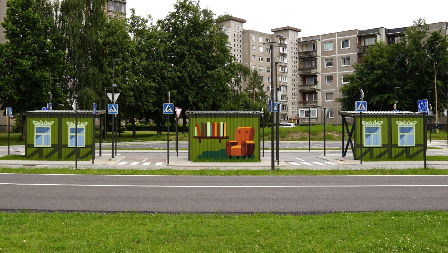A little later, some of my previously created design objects, the Ekomobiliai, were relocated here from the student town, adding another playful layer to the space.