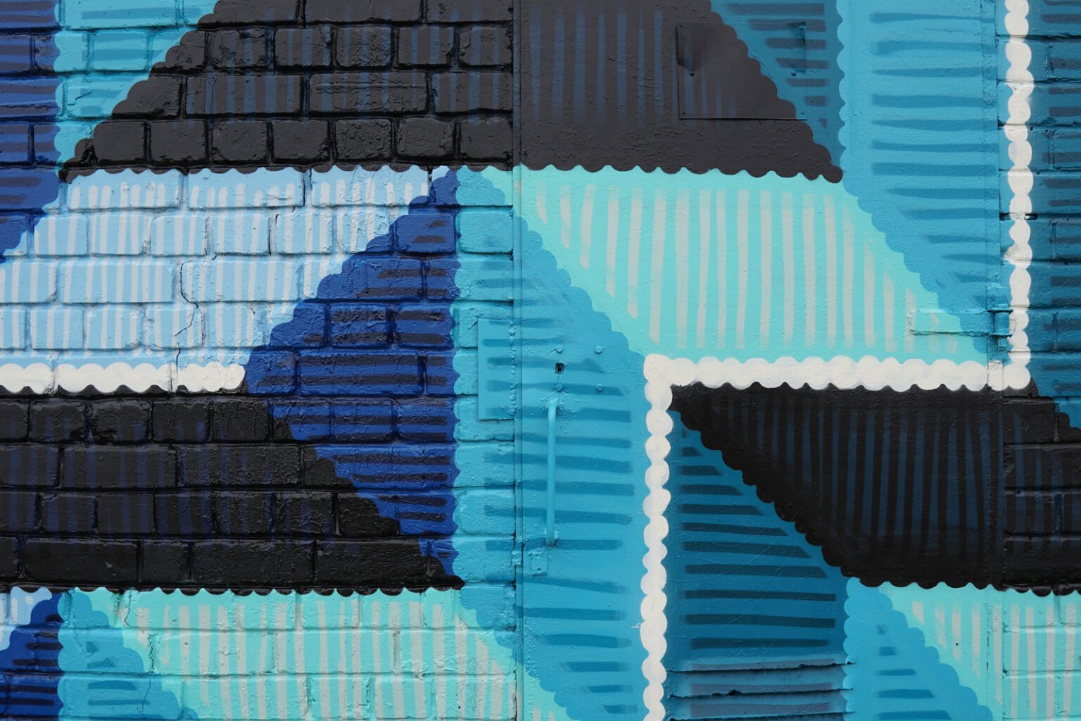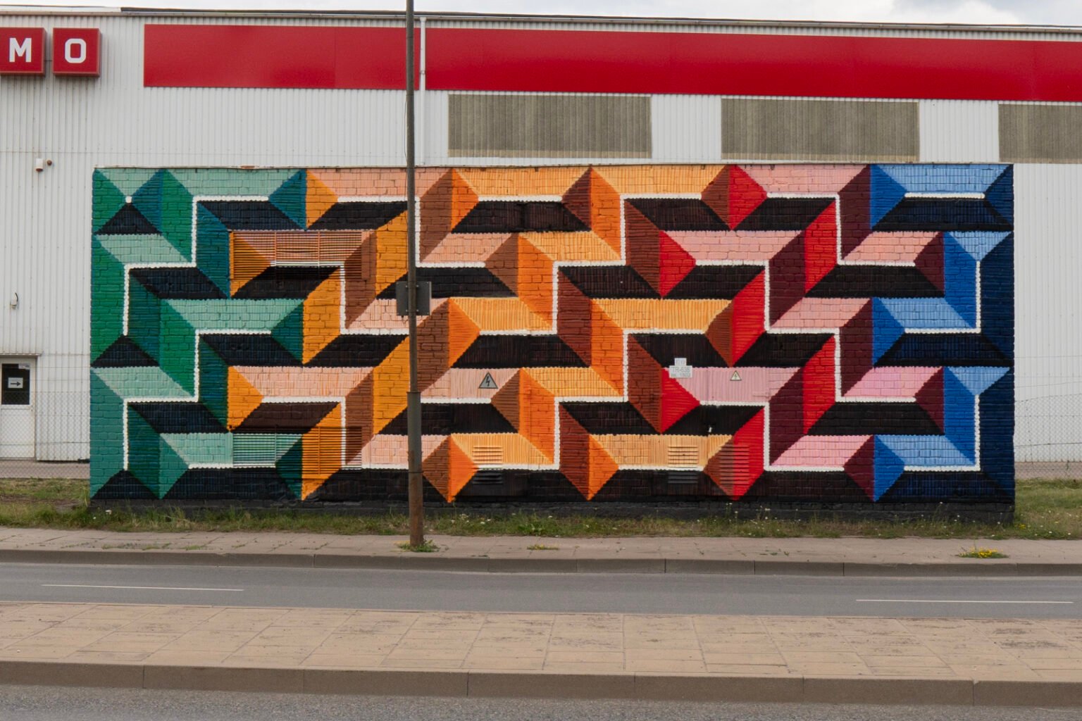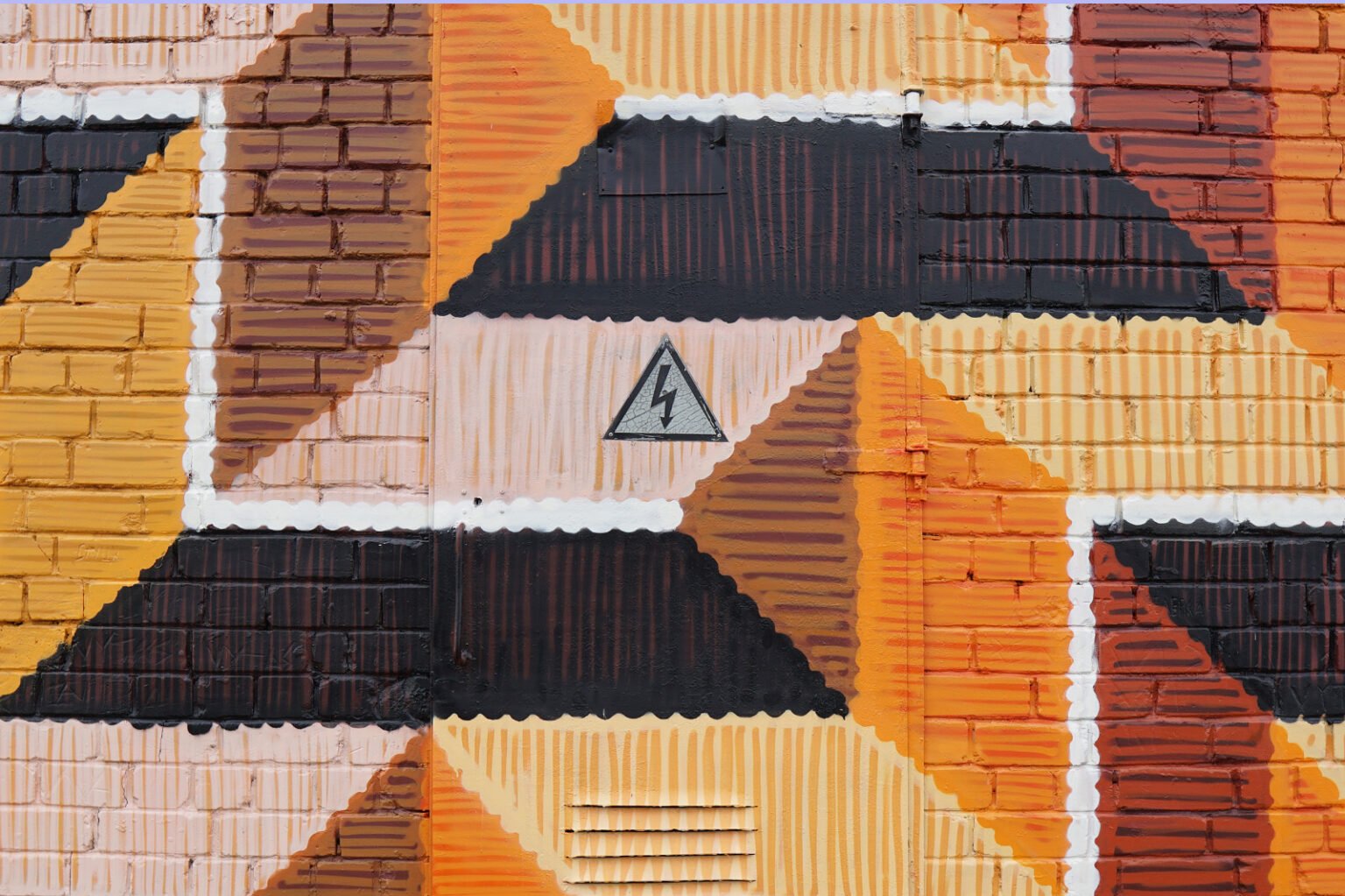 This was the first mural created in my “cube” style. I aimed not only to fill areas with color but also to introduce texture and movement through visible strokes. Even the contours aren’t straight lines, but small “bubbles,” which make the piece richer and more vibrant – though it took nearly twice as long to complete.