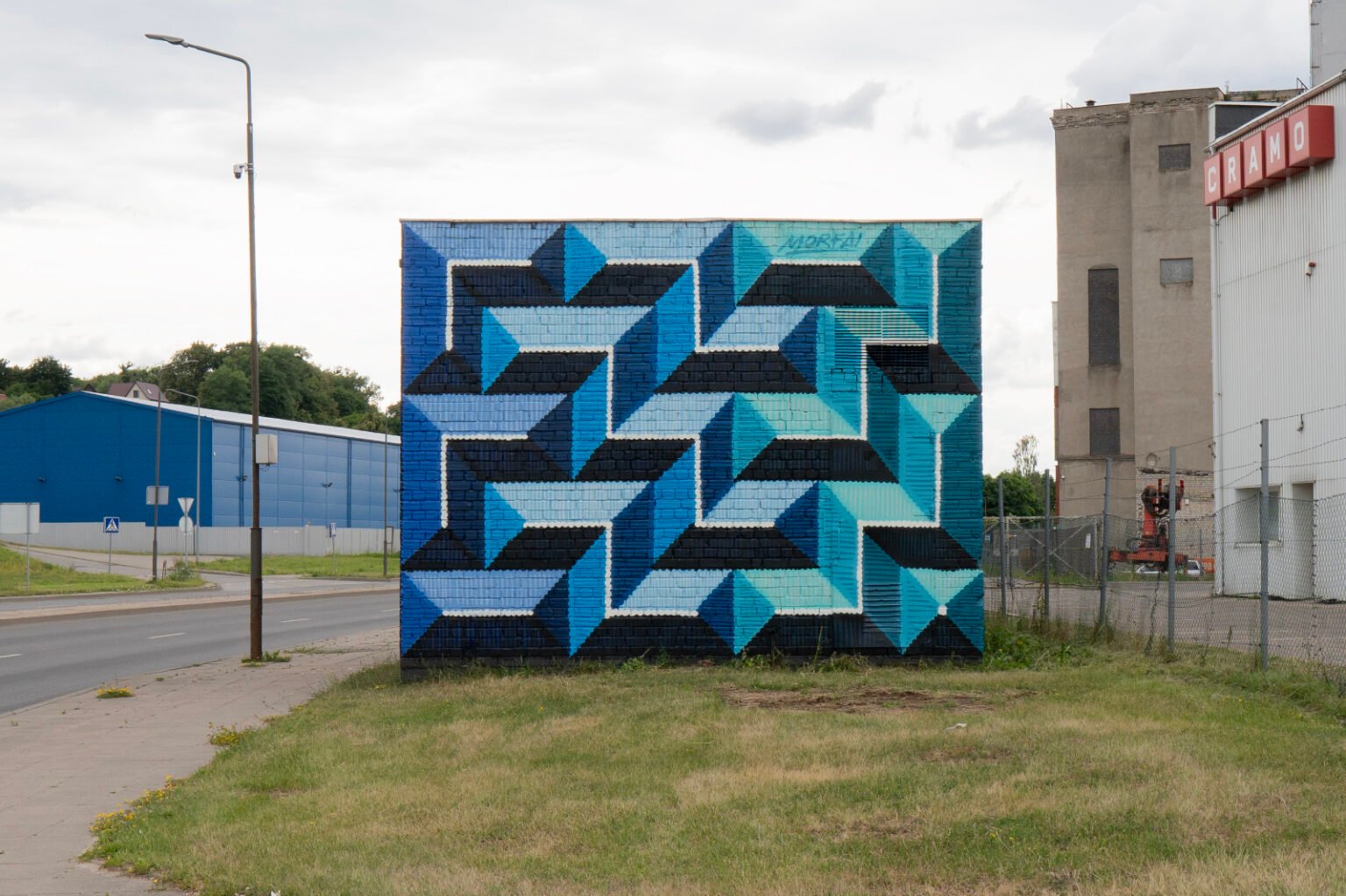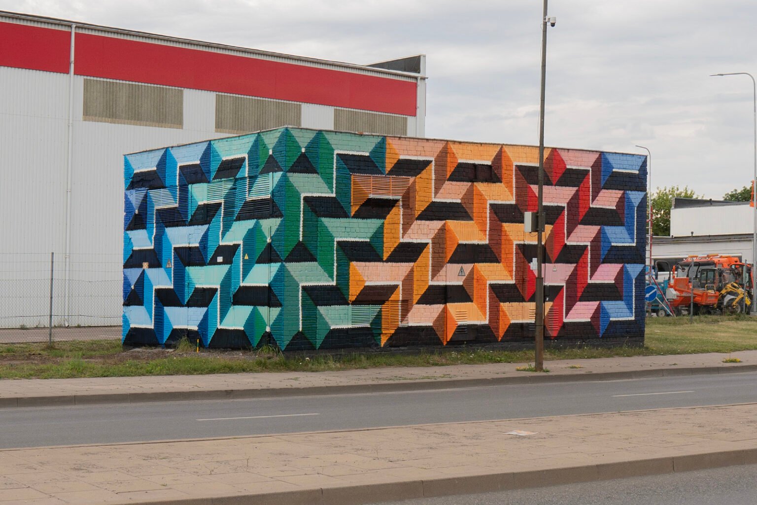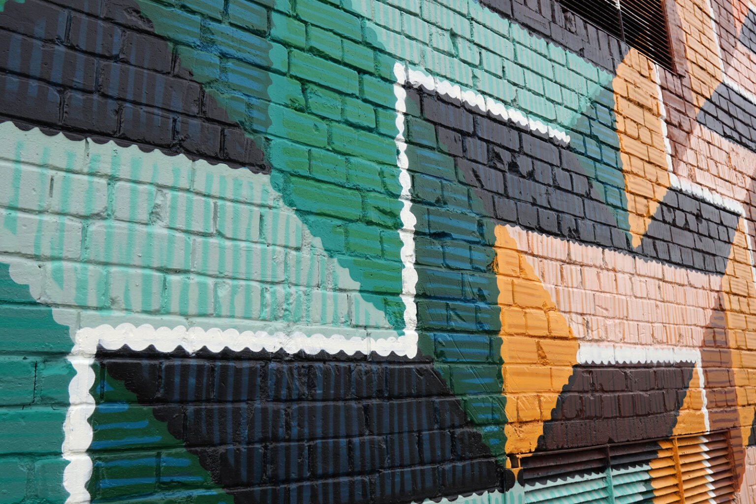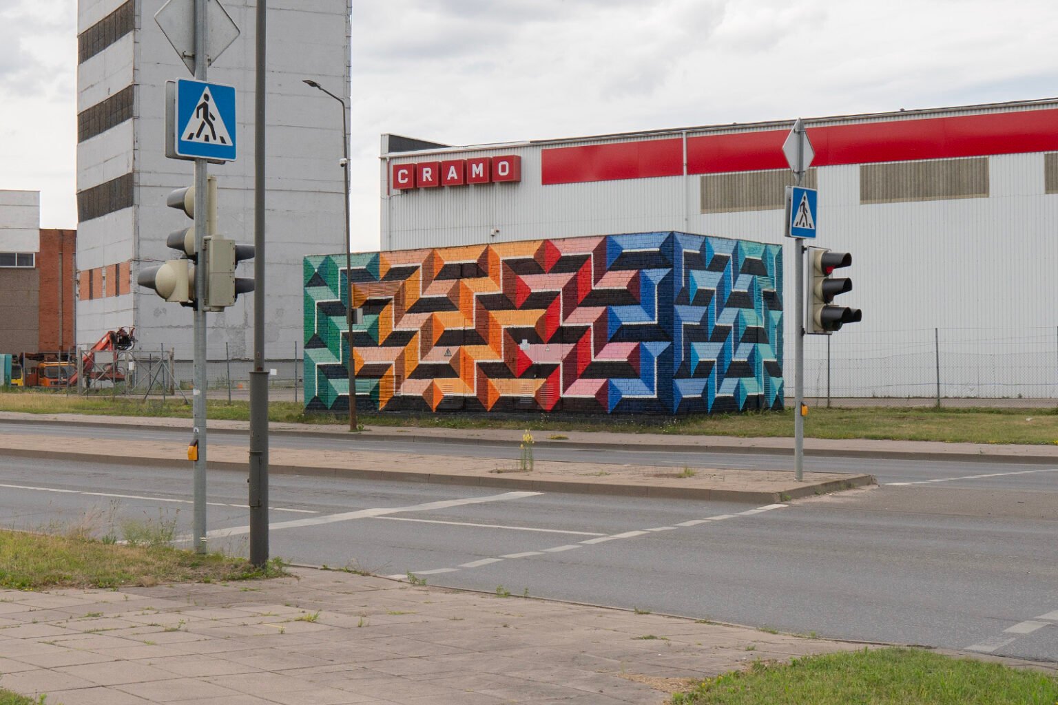 This was the first mural created in my “cube” style. I aimed not only to fill areas with color but also to introduce texture and movement through visible strokes. Even the contours aren’t straight lines, but small “bubbles,” which make the piece richer and more vibrant – though it took nearly twice as long to complete.