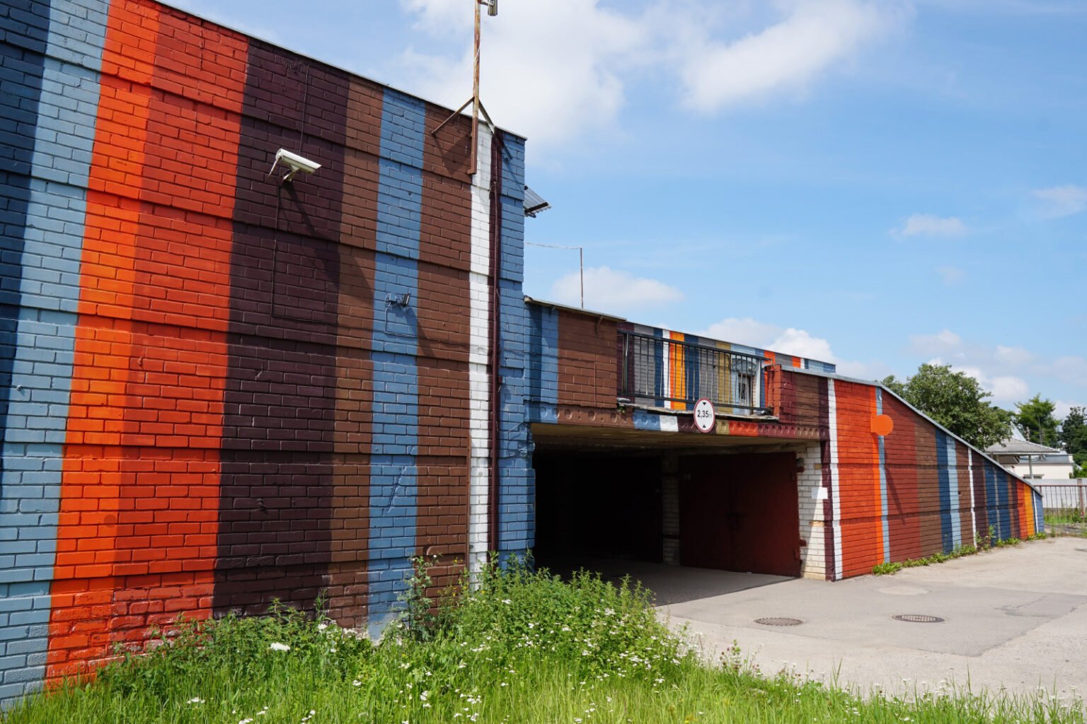 The goal was to soften and visually “hide” the façade of old Soviet-era white brick garages, which stood directly in front of a newly built private apartment complex. Residents there had an unappealing view of the garages, so the mural was meant to make the scene more pleasant.